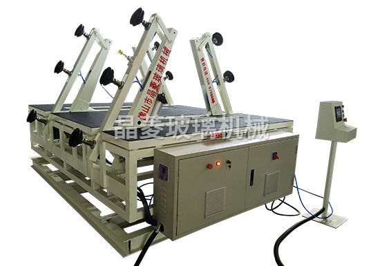 主要用於玻(bō)璃(lí)的自動取片。將玻璃(lí)放在指定位置,給出取片信號後,取片吸(xī)盤自動翻起(qǐ)並將(jiāng)玻璃吸附後放置在取片台傳送輥道上,自動將玻璃輸送到切(qiē)割機主(zhǔ)機上。