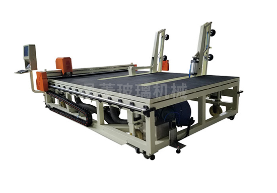 將玻(bō)璃(lí)放在指定位置,給出取(qǔ)片信號後(hòu),取片吸盤自(zì)動翻起並將玻璃吸附後放置在取片台傳送輥道上,自動將玻(bō)璃輸送到切(qiē)割(gē)機主機(jī)上。